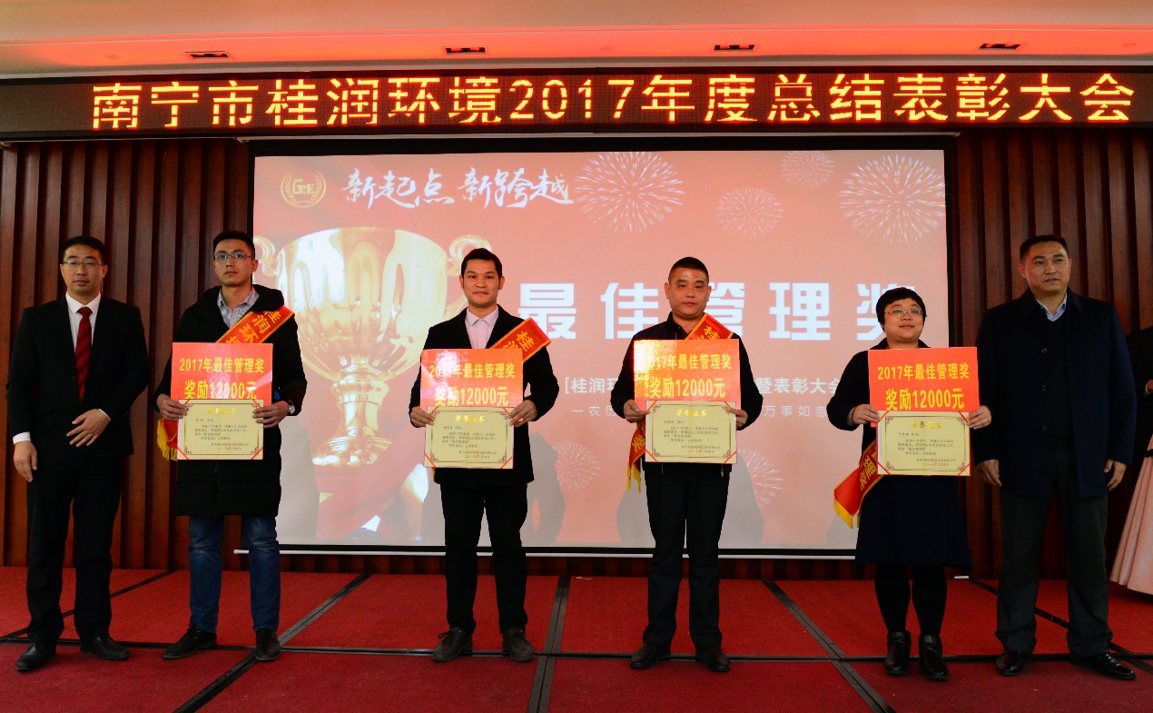 豪情欢歌辞旧岁,喜气开篇迎新年。2018年2月4日,我司在五象山庄隆重举行2017年度总结暨表彰大会,董事长魏江州、总经理孙帮周等公司领导与近200位各部门、分公司、项目部员工欢聚一堂,共度盛宴。