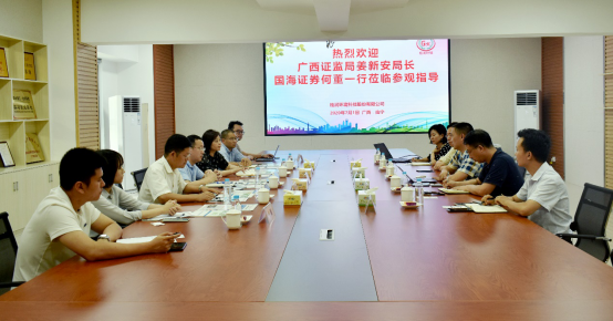2020年7月1日,广西证监局党委书记、局长姜新安率队莅临我司调研指导公司上市工作。广西证监局信息调研处处长周海东,国海证券党委书记、董事长何春梅及国海证券相关领导陪同。