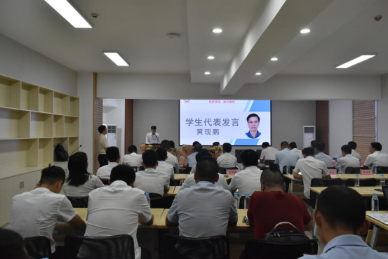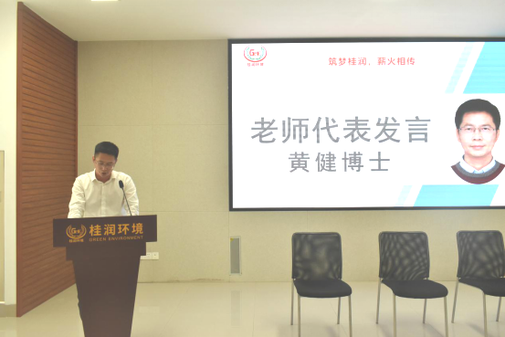拜师大会上,老师代表黄健博士和学生代表黄现鹏分别发言,表达了老师对学生的期望和祝福,也表明了学生坚定的学习态度和信念。