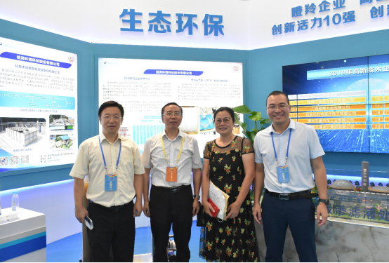 自治区科技厅副厅长蹇兴超(左二)、自治区生态环境厅科技与财务处监察专员胡永东(左三)视察k8凯发集团环境展位