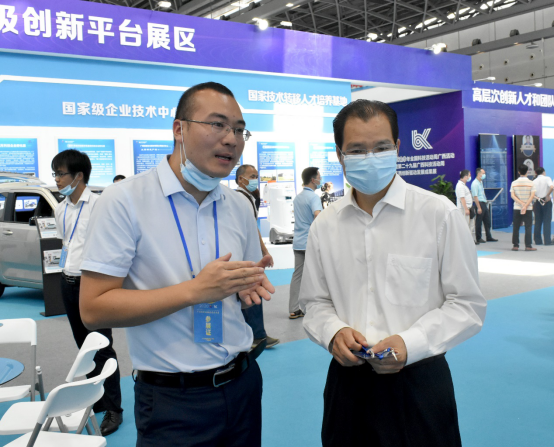 展会中,自治区党委副书记孙大伟,自治区科技厅厅长曹坤华、副厅长蹇兴超、成果转化与区域创新处处长李海洪、基础研究处处长蒙福贵,自治区生态环境厅科技与财务处监察专员胡永东、贺州市科学技术局副局长谭意军等领导先后莅临公司展位,首席技术官涂方祥博士、市场总监余意、研发工程师黄健博士分别就公司科技创新和成果转化等情况进行了介绍和汇报,得到各级领导的关注和肯定。