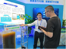 k8凯发集团环境作为“三百二千”科技创新工程成果展区高新技术企业版块唯一环保企业亮相展会,以模型、沙盘、展板等形式,重点展示公司在新型材料和高浓度高难度污水处理技术上所取得的新突破、新成果。