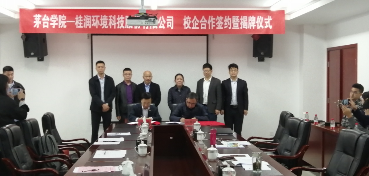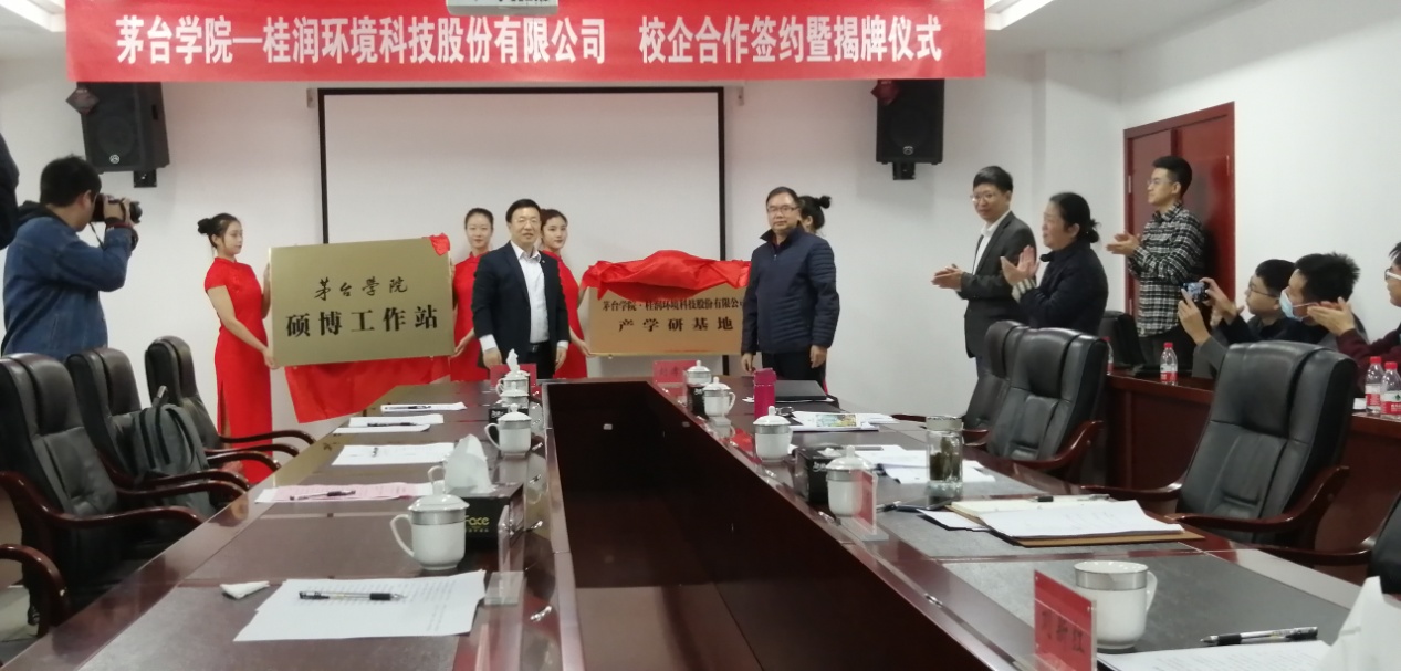 2020年10月15日,茅台学院-k8凯发集团环境科技股份有限公司校企合作签约暨产学研基地、硕博工作站揭牌仪式在仁怀市茅台学院行政楼三楼会议室举行。茅台学院党委副书记、院长封孝伦,茅台学院党委委员、副院长程庆,公司首席技术官涂方祥博士、第一事业发展部总经理康坤等领导参加,茅台学院副院长戴庆中主持仪式。