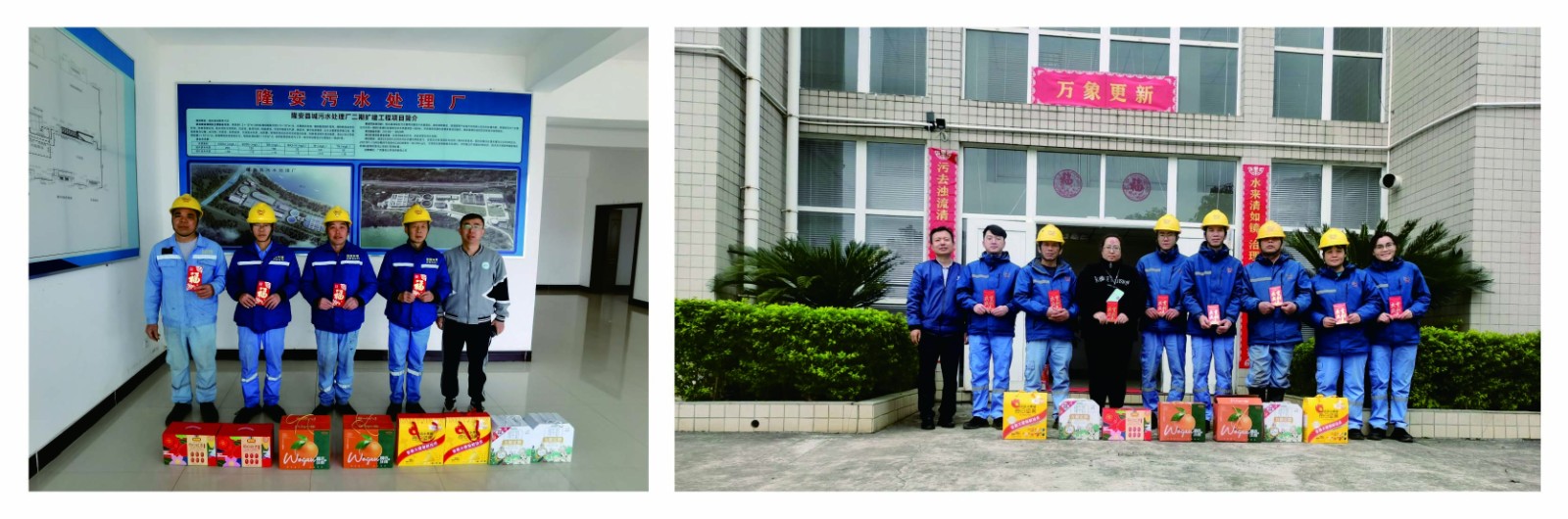 凯歌辞旧岁,情暖岁寒时。大年二十八到初一,公司领导分别到各地污水处理厂,看望慰问春节期间坚守岗位的一线同事,对他们的辛勤付出、恪尽职守表示衷心感谢,并和部分同事共饮团年酒。