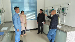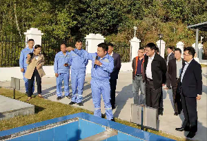 2019年12月23日,来宾市生态环境局环境监察支队副支队长张兵、王慕龙、李健民,金秀县生态环境局局长廖候杰、监察大队队长黄赵勇等领导莅临我司运营管理的新艺污水处理厂检查指导工作。张兵一行在金秀水务总