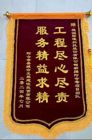 查看详情 >>?近日,阿合奇县城市发展建设投资有限公司给我司送来锦旗和表扬信,对我司“阿合奇县老城生活污水厂设备采购项目”的团队成员进行表彰和感谢。